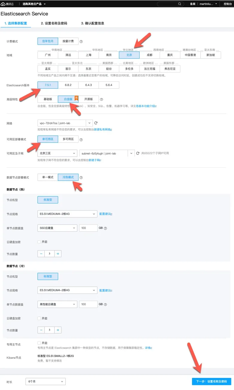 登录腾讯云服务控制台,查询并进入 Elasticsearc 服务,点击新建按钮,创建 Elasticsearch 集群。如下图所示。